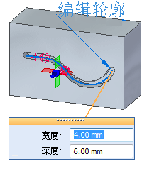 注释:动态编辑框的外观取决于槽的类型。例如,对于沉头槽,还可以编辑路径偏置和深度偏置。