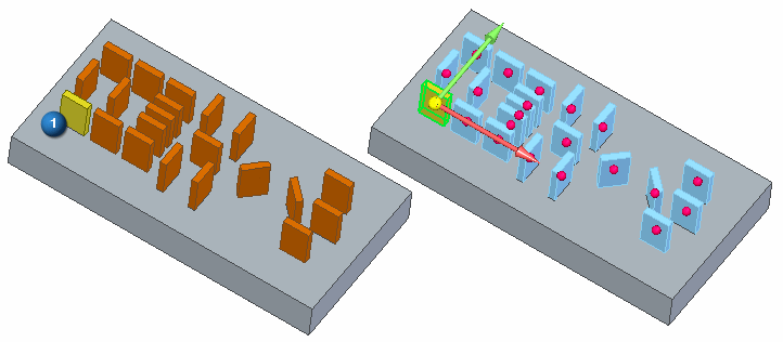 可以使用全局坐标系或任何用户坐标系来控制阵列方向。如果用户坐标系发生更改,阵列方位会自动更改。