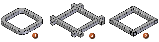 也可将半径应用于邻近的框架部件 (1),延伸框架部件 (2) 的端部,或在邻近的框架部件 (3) 上不应用端部条件。