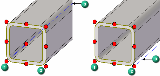 。您可以使用此按钮选择横截面草图中要捕捉到的任意关键点。选定的关键点将自动连接至框架路径。 - 关键点