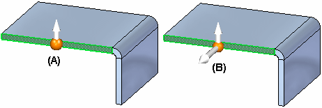 可用于在同步钣金文档中构造弯边的图形工具或手柄。弯边起始手柄可在 2D 方向盘上独自显示 (A) 或与主轴 (B) 一起显示。