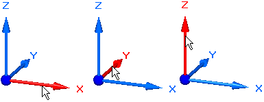 要限制与轴平行的移动,请选择三个轴中的一个(X、Y 或 Z)。还可通过按键盘上的 Z 键在各个轴之间来回切换。