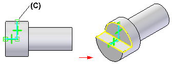 虽然并不存在实际的边,但 青翼 CAD 中的某些操作允许您使用此理论意义上的边。例如,可在轮廓线和轮廓边之间添加连接关系 (C) 来创建一个切口特征。