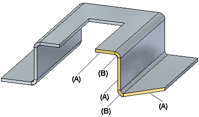 钣金件中相连的一系列厚度面 (A) 和折弯端盖 (B)。