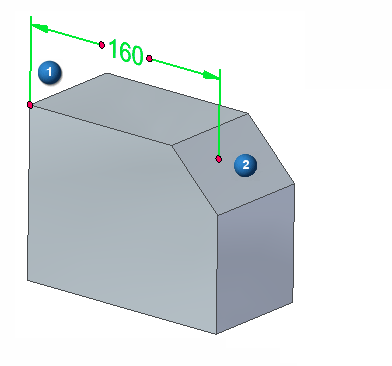 在曲线或曲面相交处生成的任何点 (1)。对于三个平的曲面相交处不在物理模型上的情况,这可称为虚拟顶点 (2)。