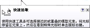 工具提示 - 可帮助您识别用户界面元素,包括命令图标、选项按钮以及其他小工具。将光标指向用户界面元素时,标签将显示该命令的名称以及命令功能的简短描述。如果此命令还存在组合的快捷键,则会显示此快捷键以调用此命令。此外,还会显示信息图形以及指向其他帮助的指针。