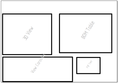 图纸 2 图纸页布局 - 在装配的后续图纸页上,给 3D 模型、BOM、轮播视图和审核者注释添加容器。对于零件模型,可以添加多个 3D 视图容器以同时显示顶部和侧面 PMI 模型视图,而不是添加下面所示的单个 3D 视图容器。
