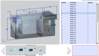 单击 BOM 中的零件以在 3D 视图窗口中高亮显示它们。