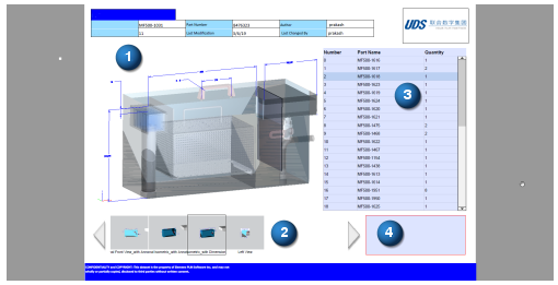 通过单击 BOM 中的零件来确定装配部件。在红色轮廓文本区域中输入注释和说明。