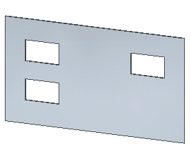 当在“同步钣金”中使用时,此命令不会创建厚面的面集合。例如,镜像的特征 (A) 实际上是平板中的一个切口,厚面作为平板定义的一部分包含其中。