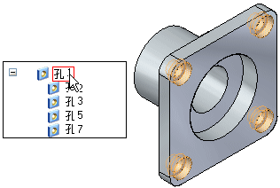 示例:您可能需要在原先具有相同特征参数(如直径和深度)的一组孔中对一个孔的直径进行修改。