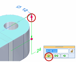 如果对话框上指出的方向含糊不清,如下例所示,则单击尺寸线上的 3D 箭头或球以指定方向。
