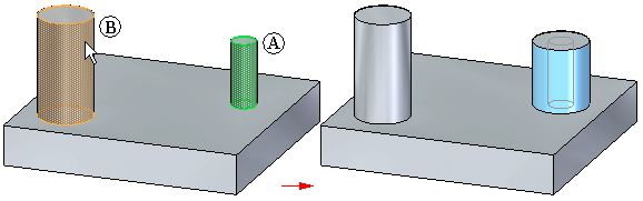 使种子面的半径与目标面的半径相等。例如,可以使圆柱形种子面 (A) 的半径与圆柱形目标面 (B) 的半径相等。