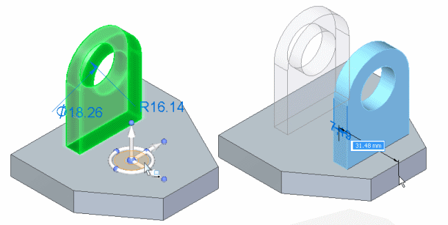 然后可单击方向盘上的主轴箭头来移动选定面。相邻面自动更新。