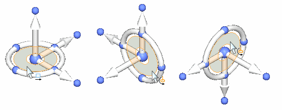 按住 Shift 键并单击轴旋钮,将在环面的平面中转动方向盘的方向。
