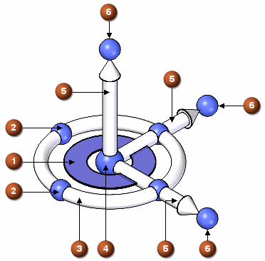| 操作 | 工具平面 (1) | 从方向 (2) | 圆环 (3) | 原点 (4) | 轴 (5) | 轴旋钮 (6) |