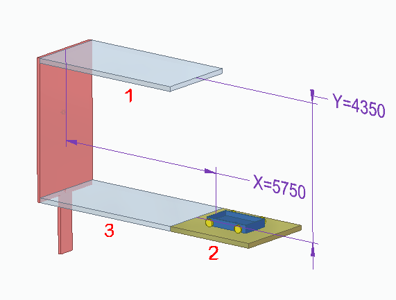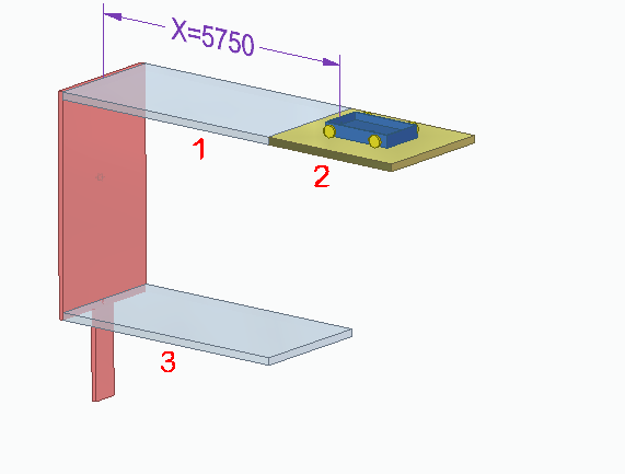 一旦和零件 3 处于同一层,小车将水平移到初始位置。和零件 2 之间的贴合关系将被抑制,和零件 3 之间的贴合会被取消抑制。