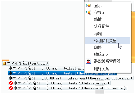 向装配关系添加抑制变量