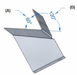 显示无符号的内折弯角 (A),如 90°。