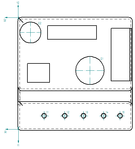 在同一孔参数表中,可以在同一图纸视图上定义不同的 XY 坐标原点,然后基于不同的原点显示孔的位置。