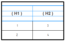 示例:可以使用两个合并选项以不同的方式安排每列的列标题单元格 (H1) 和 (H2)。