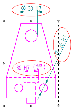 包括图纸视图内部以及连接到它的所有配合尺寸。