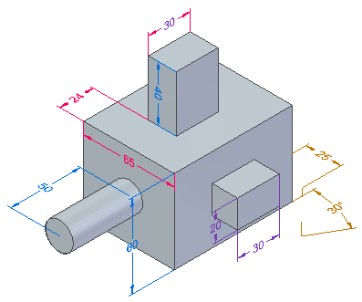 在同步建模环境中,还可使用功能区上任何其他选项卡中的尺寸和注释命令,将 PMI 添加到模型,以及对草图标注尺寸。它是您选择的元素的类型(模型边或几何体草图),而不是确定尺寸是 3D PMI 尺寸还是 2D 草图尺寸的命令。