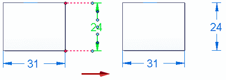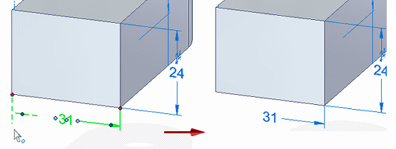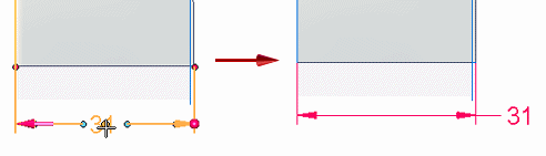 单击并拖动一个尺寸线编辑手柄,直到达到所需长度。对尺寸文本另一侧的尺寸线编辑手柄重复此操作。
