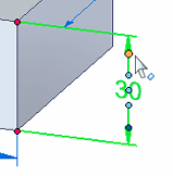 要更改 ISO 尺寸的投影线长度,请单击并拖动位于投影线接触几何体的点的连接手柄。这样将露出浅蓝色投影线编辑手柄。
