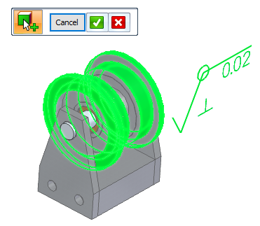 单击模型或路径查找器中的 PMI 注释,然后在编辑命令条上,单击参考几何体