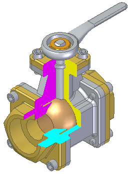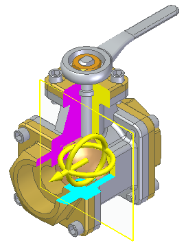 ,以使用一到三个切割平面创建活动模型的 3D 剖视图,从而显示内部部件。该剖切可能切穿整个零件,也可由切割平面的交线定界。