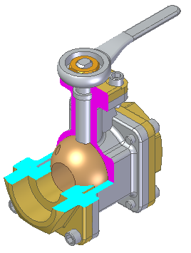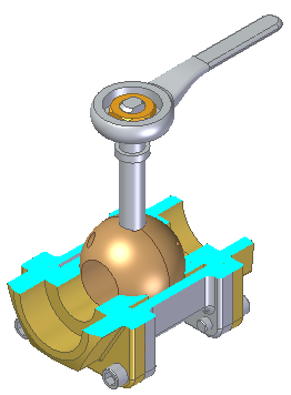 创建如图所示的装配剖视图。不要切割手柄、螺母、轴和球阀。