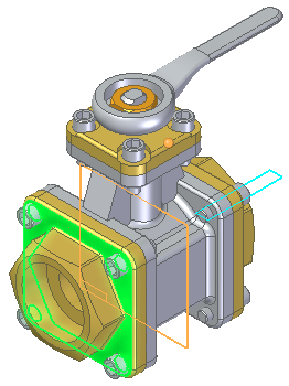 将平面定位在图中所示顶部法兰边中点,然后单击。