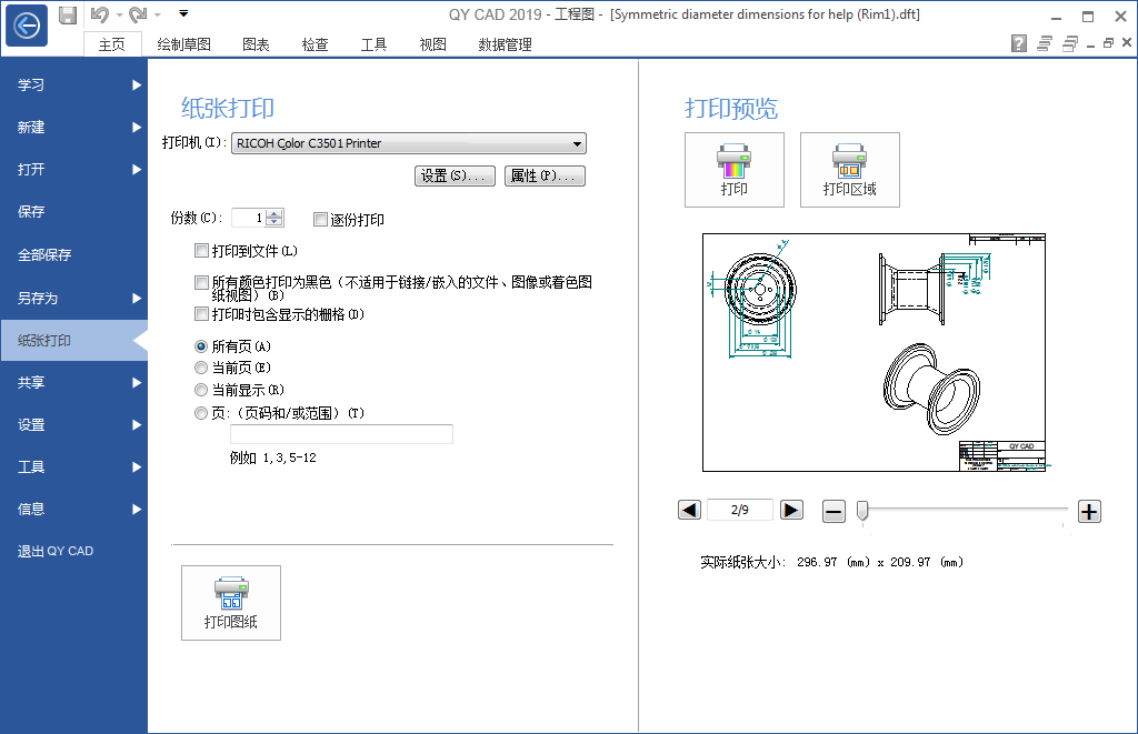 打印、打印区域和打印图纸命令可对 青翼 CAD 活动窗口中打开的文档进行操作。