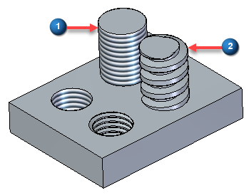 在新特征和现有特征之间切换装饰 (1) 和物理 (2) 螺纹。