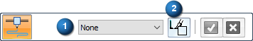 在打印材料命令条上,指派材料 (1) 或应用颜色 (2)。