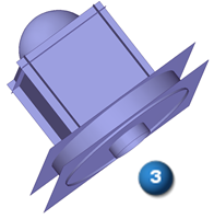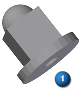 在此示例中,缝合命令用于标识要缝合在一起的曲面的区域。只有具有匹配边状态的区域可以缝合在一起。选择了球曲面 (1) 和顶部平的曲面 (2)。选择预览选项来验证所选的曲面是否能成功缝合在一起 (3)。选择完成选项以完成操作。成功缝合的曲面显示在路径查找器的特征收集器中。