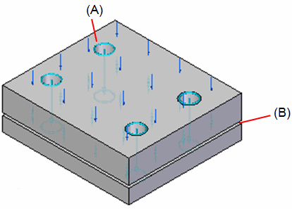 示例:使用螺栓命令可创建螺栓连接件 (A)。