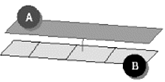 区域 (A) 具有一个线形网格,而区域 (B) 具有四个。在源区域 (A) 和目标区域 (B) 之间创建接触单元时,将创建一个接触单元。