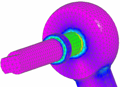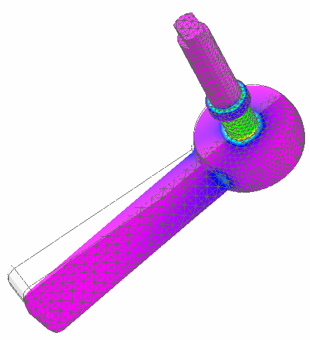 旋转视图并进行放大,从而可以看到手柄轴界面的底面上的最高应力。