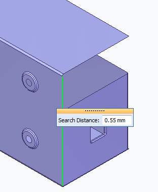 选择盖的边(长边)作为从边,并在搜索距离框中键入 0.55 mm。