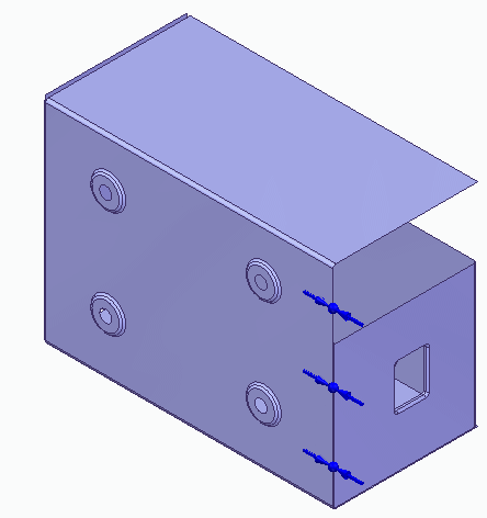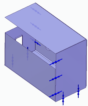 将边连接件应用于钣金装配。边连接件使用约束所有六个自由度 (DOF) 的刚性单元来模拟 Femap 最近连杆命令的功能。