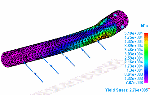 假设每个手臂对该横杠施加的力相等。利用对称性,可以通过将横杠剪成一半来加快有限元模型的处理。