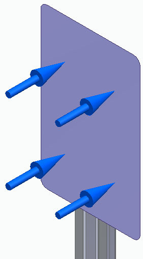 使用线性静态分析来确定标杆上气压(由风速来度量)所造成的应力。标杆装配包含实体零件和钣金件,需要混合网格(四面体和曲面)。