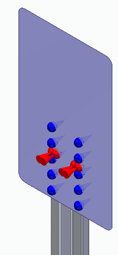 在 sign.psm 的顶部,两个零件之间创建粘连连接件的位置显示连接件目标符号(红色)和连接件源符号(蓝色)。