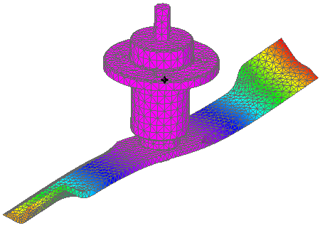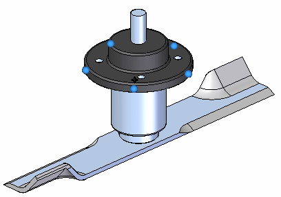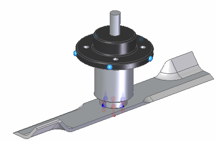 使用模态分析找出割草机刀片装配在应用约束后发生共振的固有频率。目的是确认固有频率(共振频率)没有接近装配的工作频率。