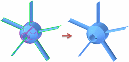 | 步骤 2. | 使用仿真几何体选项卡→曲面组→合并体命令 |