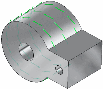 如果要使生成的承压载荷垂直于曲面(如压力载荷),但仍要根据角度进行分布,则可以使用垂直于曲面选项