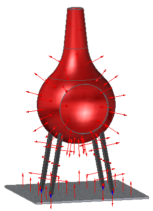 载荷的默认方向垂直于所选曲面或面。可使用命令条上的翻转方向按钮来将载荷方向反向。