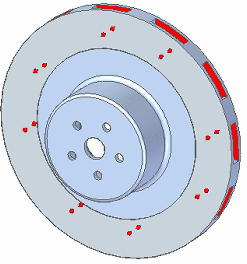 热通量载荷应用于刹车盘模型两侧的刹车片表面。